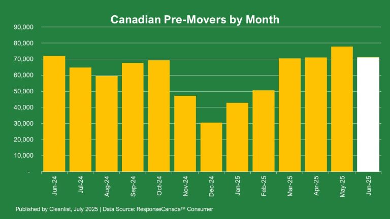 Ontario continued to lead with 35,664 pre-mover listings. That’s down slightly from May but still the second-highest total recorded in the last 12 months—cementing the province’s role as the top driver of national volume.