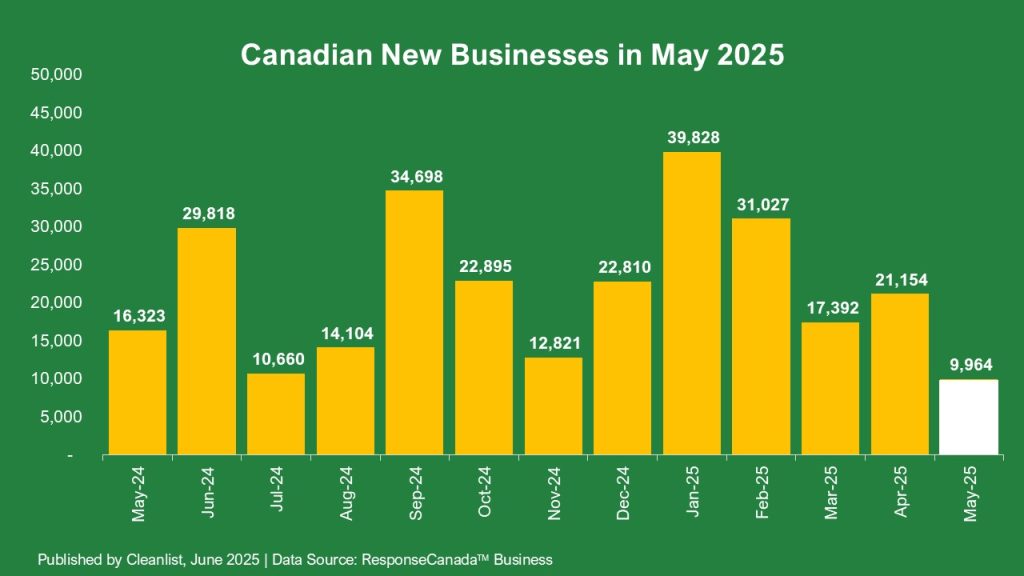 After signs of a rebound in April, May’s new business formation numbers took an unexpected dive—dropping to the lowest level we’ve recorded in more than a year. At the same time, closures surged, painting a concerning picture for Canada’s entrepreneurial landscape.
